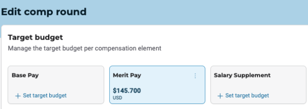 We enhanced the capabilities of the user with Compensation admin professional role. When configuring the compensation round in the Budget step, a new section called Target budget is available to this user. This new section is illustrated below: