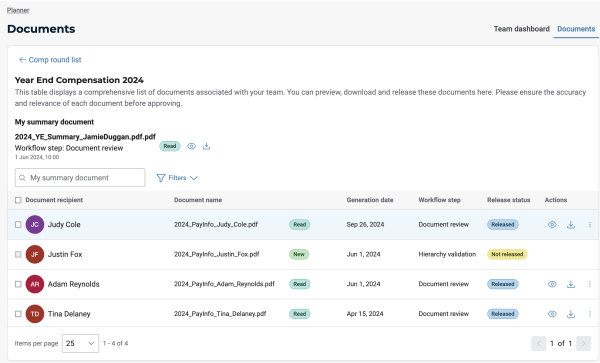 The visibility of the communication rounds in Planner > Documents is now based on the start and end dates defined for the rounds. The communication rounds are hidden for bith HRBPs and communication managers outside of the period defined by the start and end dates.