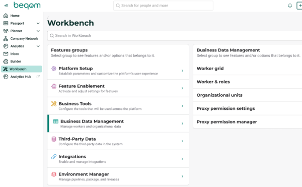 The proxy settings located under Workbench > Features groups > Business Data Management are now divided into two sections: