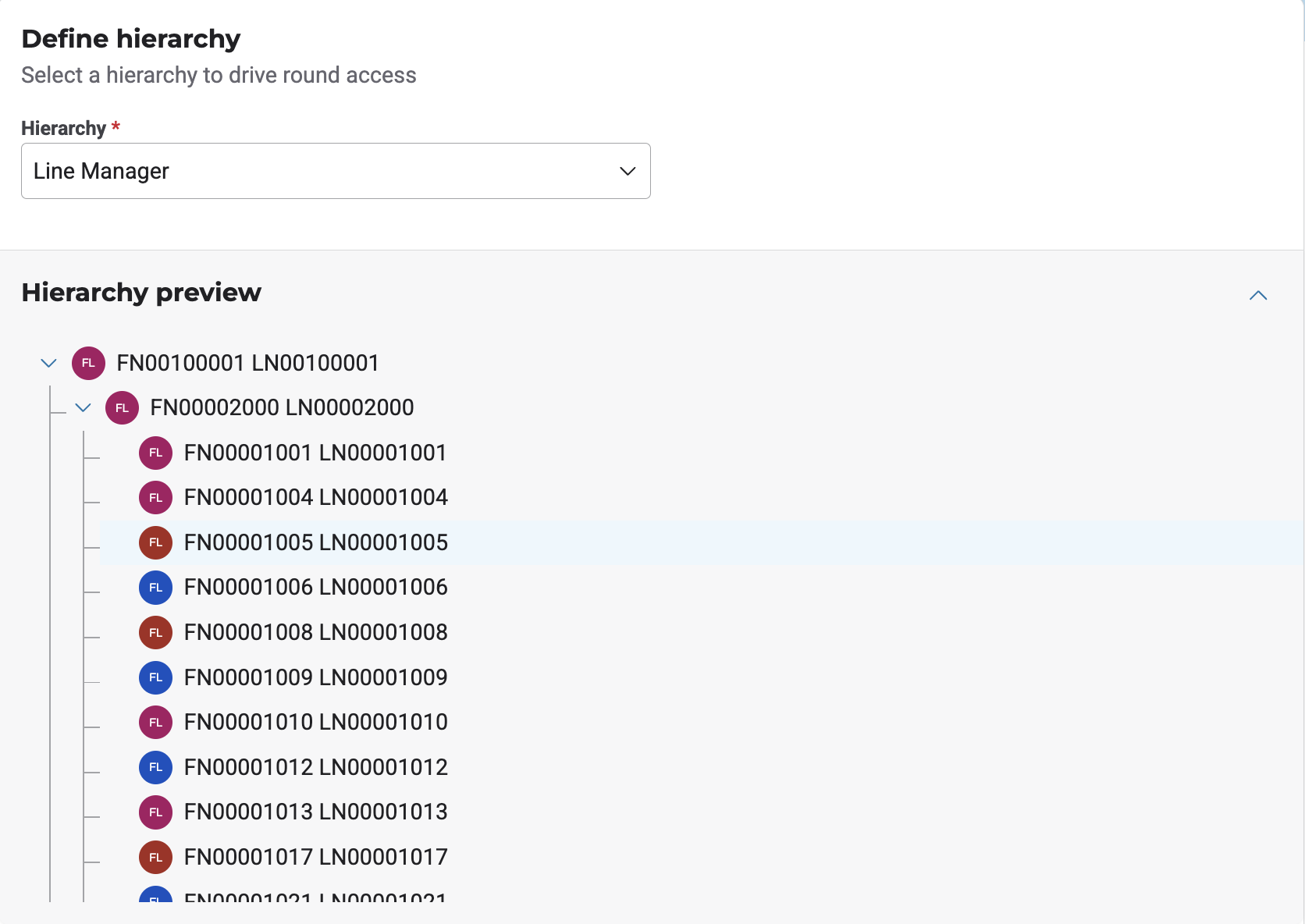 Compensation admins can now define the hierarchy that determines communication managers' access within a communication round. This configuration allows flexibility in structuring managerial access, with available hierarchy options including line manager, matrix manager, communication manager, and compensation manager.