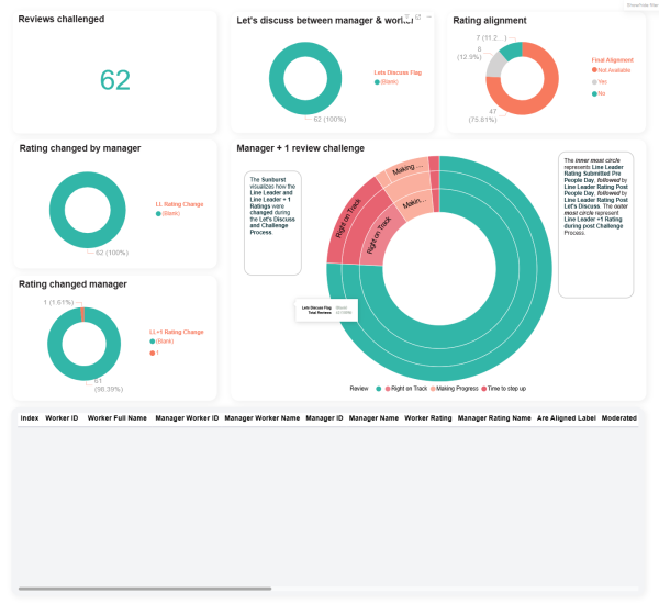 | Let's discuss between manager & worker | % let's discuss between manager and worker | The number of reviews where "Let's discuss" option has been used. |