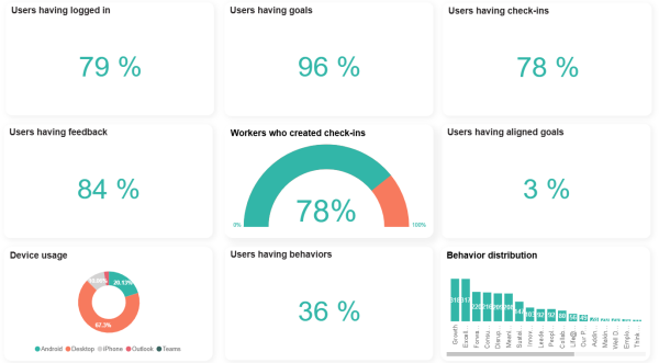 | Users having aligned goals | % users having aligned goals | The percentage of users who have at least one goal that is aligned to a parent goal. |
