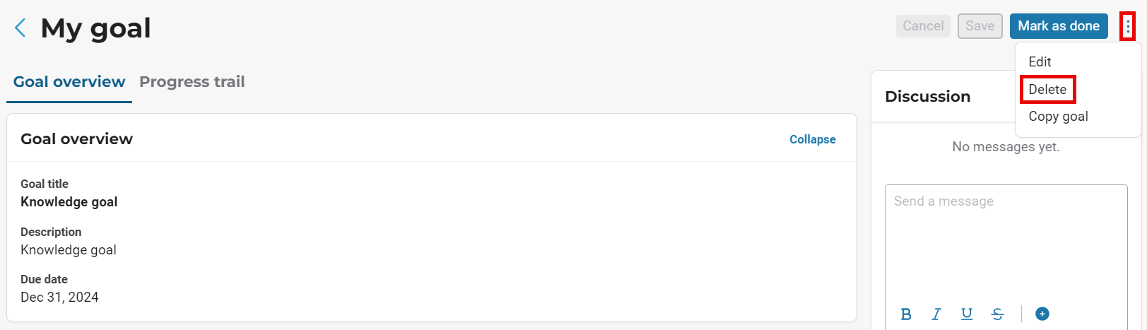 To delete an existing goal from the My goal or the Shared goals goal table, proceed as follows: