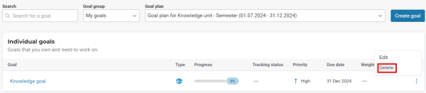 To edit a goal from the My goals or the Shared goals table, proceed as follows: