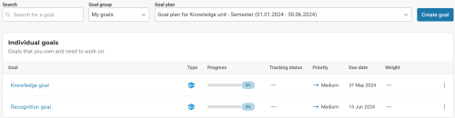 When opening the Goals section, the My goals section is opened by default and displays the list of goals that you own according to the selected goal plan.