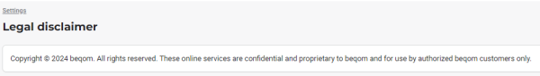 In the Account section, click Legal disclaimer. You are redirected to the legal disclaimer page, as illustrated below: