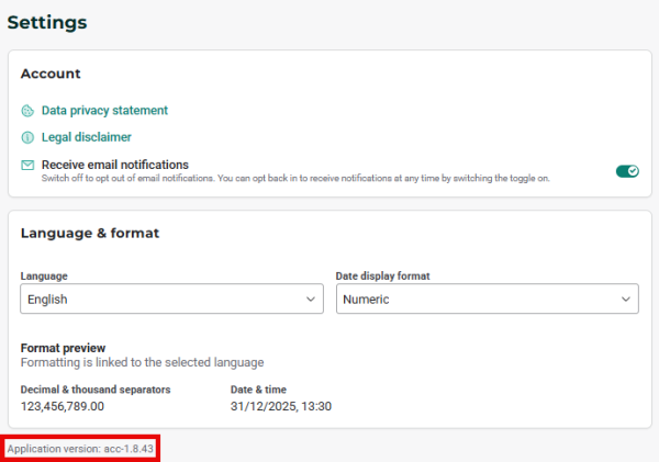 From your user settings you can, at any time, review the data privacy statement and the company legal disclaimer.