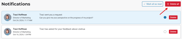 From the Notifications section via the Delete button