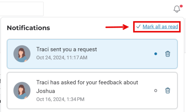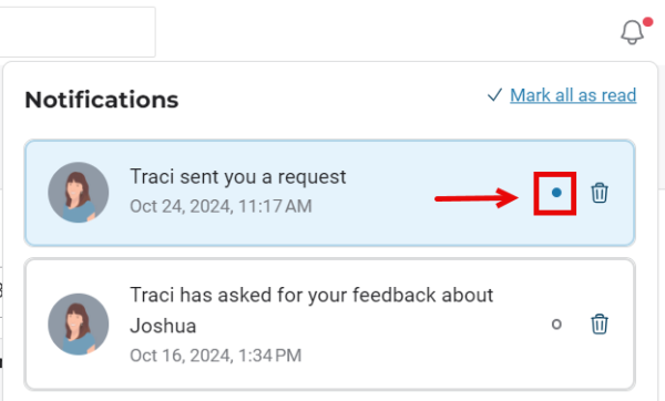 To mark a notification as read, proceed as follows:
