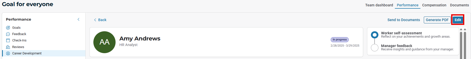 Career development plan Edit button