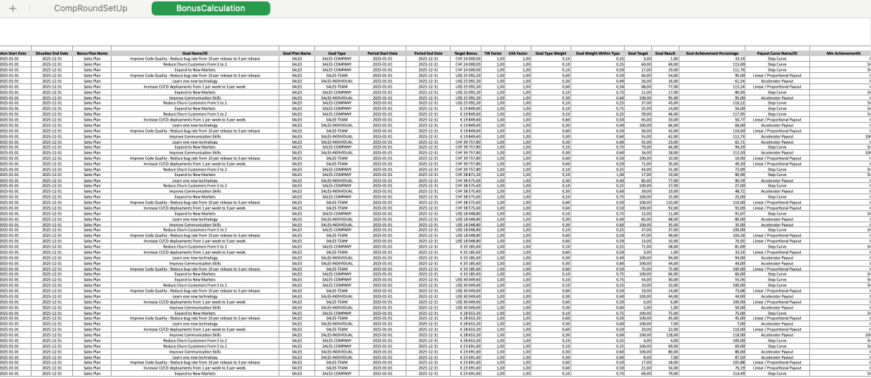 This release introduces a new Bonus Calculation tab within the validation report. Designed to enhance visibility into the bonus distribution process for bonus compounds, this update aims to provide comprehensive insights into how individual bonuses are calculated and aggregated across various compensation situations within a bonus plan.