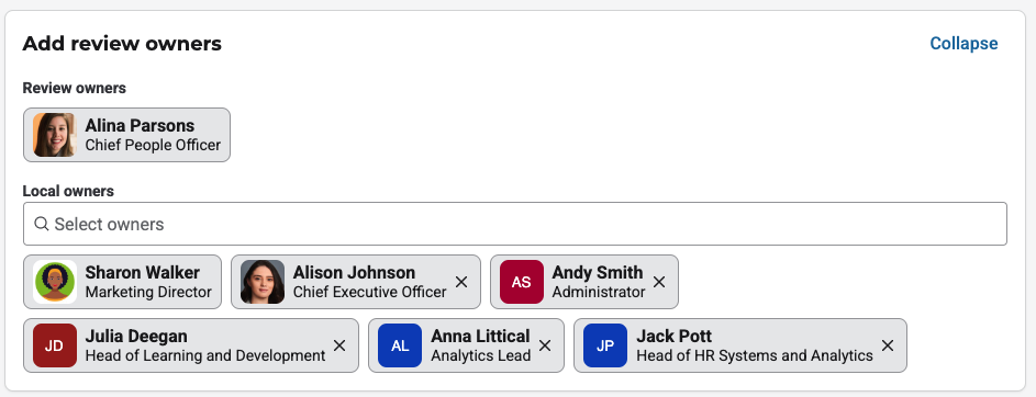 The local owner is a new administrator user within the review process, assigned to users with the Review role.