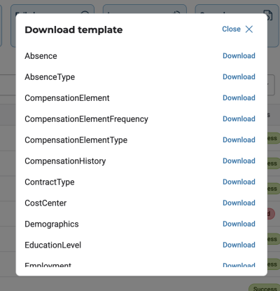 Before uploading your data, you must download a template to ensure your data is structured correctly before uploading. Templates are available for all data foundation entities and enums.