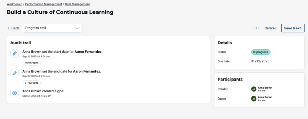Every change made to goal dates is now tracked and recorded in the Progress Trail, ensuring visibility and accountability.