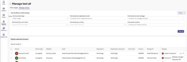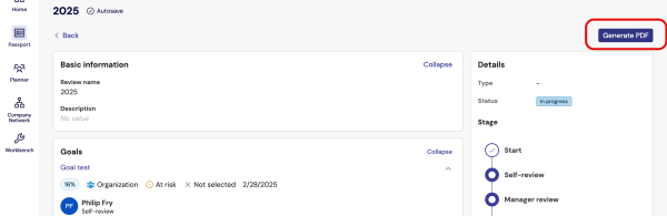 It is now possible to generate PDF performance reviews in two ways: while viewing the review and using the three-dot action icon in the Manage reviews list.