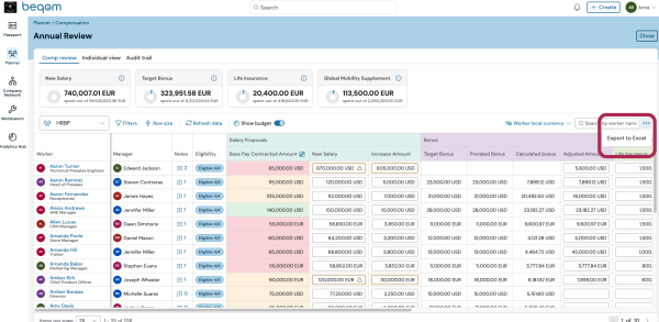Starting with 21.1 release of Pay Suite, users can export Planner compensation round data directly into a password-protected Excel file. This capability enables review and data manipulation outside of the platform.