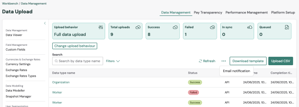 Data foundation admins can now configure automated notifications for failed data upload requests directly from the Data Upload section of the Workbench.