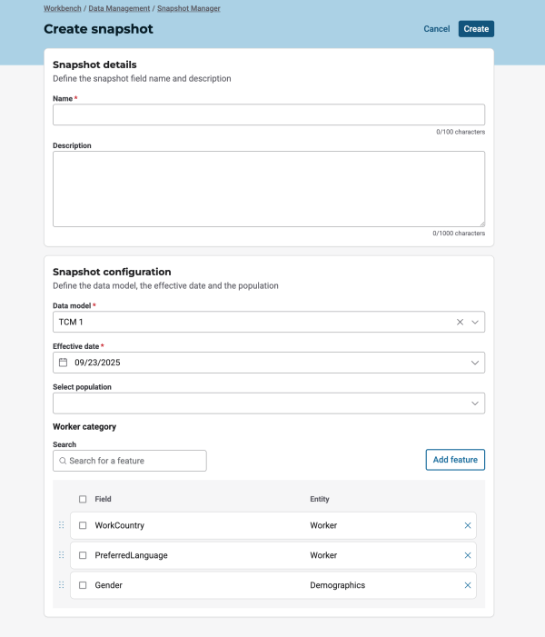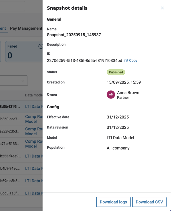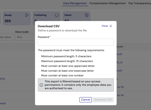 Moreover, snapshot CSV exports now respect data access permissions. Exported files will only include workers that the user is authorized to see based on their role and access permissions. This applies to all roles that can export snapshot data. If a user's access is restricted, for example by country or organizational scope, the CSV export may contain a subset of the snapshot population, and a warning message will be displayed to indicate this limitation.