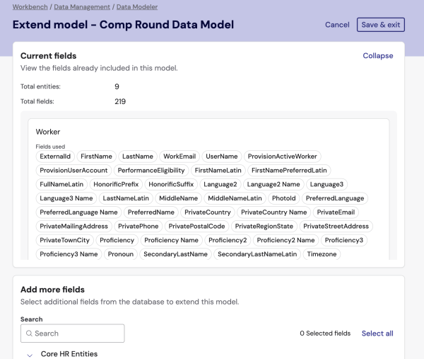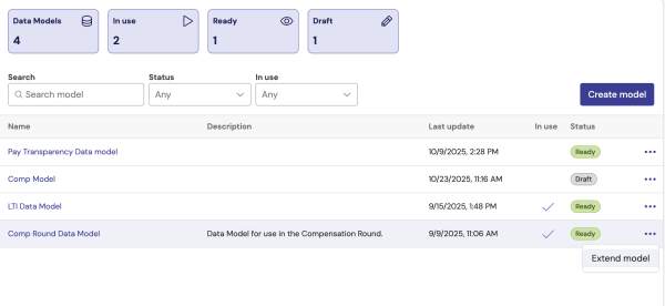 In 1.5 release we introduce the Data Modeler, a powerful new tool in the Data Management section of the Workbench. This feature enables user with compensation admins professional role to create custom data models tailored for processes such as compensation rounds. The Data Modeler empowers users to streamline and customize data structures to meet their unique process needs. The key capabilities of this feature include: