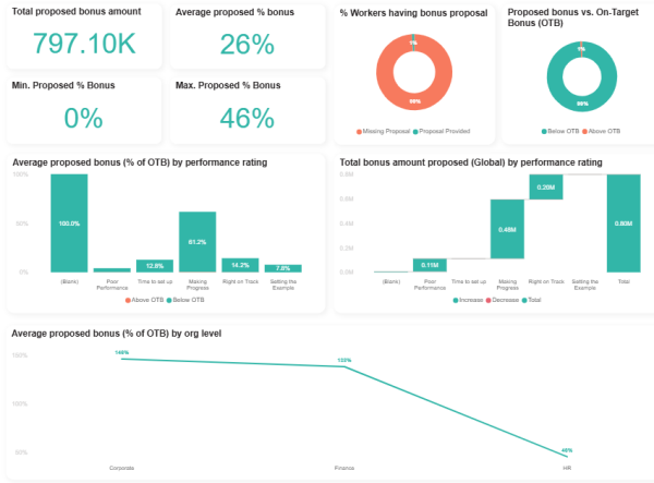 This report offers a clear overview of how bonuses are being allocated across the organization.