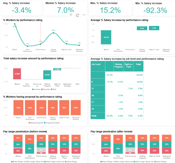 This report offers a deep dive into the relationship between performance and salary increases across the organization.