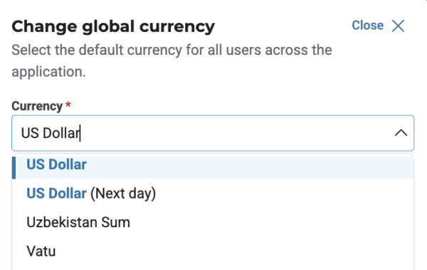 Selecting global currency