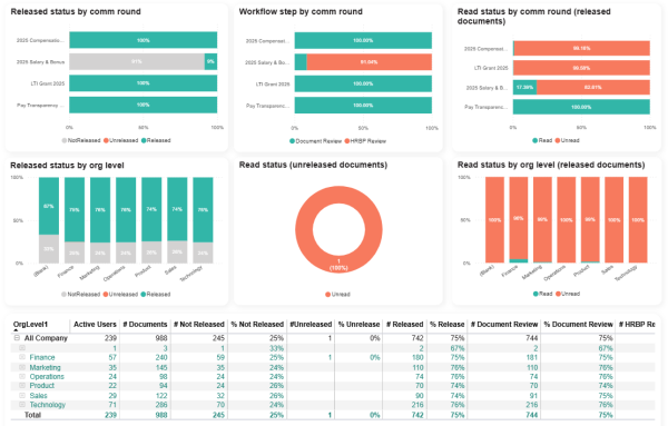These reports offer a tabular view on all the key information at worker-level for all Salary, Bonus and Salary & Bonus compensation rounds.