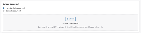 Import a static document: use the Upload button to import a PDF file from your local device, as shown below: